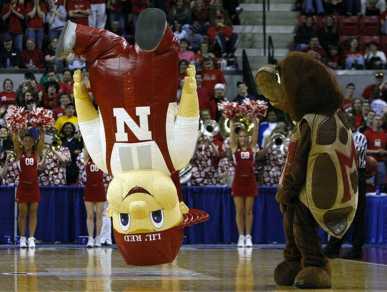 Lil' Red scares me. Something about that face of his, always smiling, and staring, and smiling, and staring. Introduced in 1993, he's the newest of the two current mascots for the Nebraska Cornhuskers, the other is Herbie Husker. Lil' Red is an air supported mascot, it's trainer wears a fan belt which inflates the costume allowing it to do all sorts of stunts a regular mascot could not usually perform.
