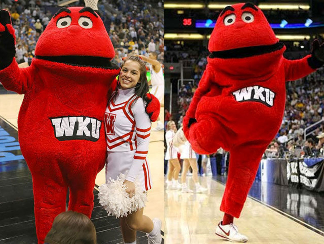 Western Kentucky's "Big Red", like Brutus Buckeye, is a member of the Mascot Hall of Fame's Class of 2007. Red, created in 1979, is meant to be a symbol of the WKU students' school spirit... their school spirit apparently resembles a giant red blob.