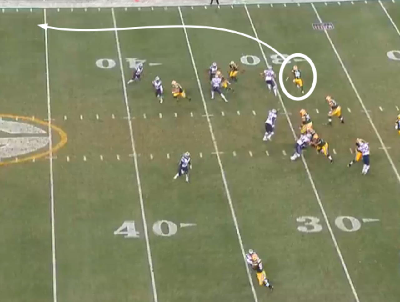 That created a speed mismatch in favor of the Packers. Quarterback Aaron Rodgers lobbed a 33-yard pass down the ride sideline to Cobb.