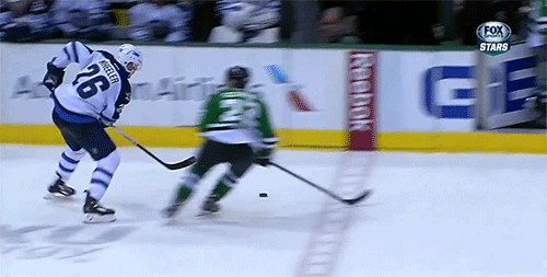 During Monday's game in Dallas, Winnipeg Jets forward Blake Wheeler crashed into the Stars' open bench door, forcing him to leave the game in obvious discomfort.