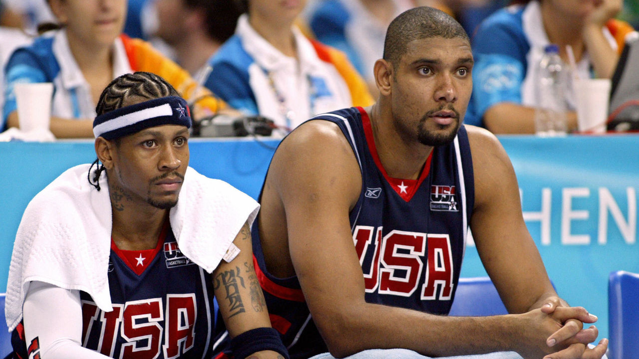 Tim Duncan, a two-way force in the paint, served as captain, while Allen Iverson was perhaps the athlete with the most star wattage. Along with Shawn Marion and Stephon Marbury, those were the only four players on the team older than 25. At 19, LeBron was one of only five teenagers in the entire tournament. The general inexperience reared its head immediately.