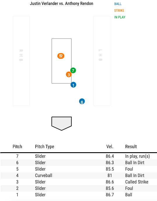 If the Nationals were to wake from their offensive slumber after scoring three runs combined over their previous three games, they needed one of two things to happen in Game 6: better efficiency with runners in scoring position, or more production from Anthony Rendon - their suddenly scuffling superstar who'd managed a meager .200/.273/.300 line through the first five games of the series. Washington got both of those things in the first inning to take its first lead since Game 2. After Adam Eaton bunted leadoff hitter Trea Turner over to second base to put a runner in scoring position two batters into the game, Rendon outlasted Justin Verlander in an expert-level, seven-pitch plate appearance that didn't feature a single fastball. With the count full, Rendon poked the sixth slider of his at-bat through the vacated right side of the infield, plating Eaton on a ground-ball single with an expected batting average of just .180.