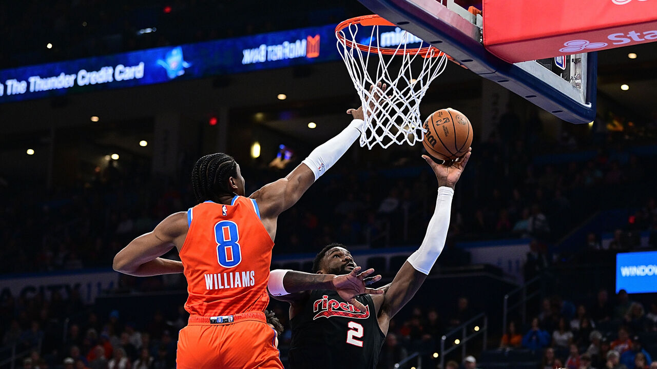 That bore out early this season when both Hartenstein and Holmgren were injured and Williams was thrust into duty as OKC's starting center. He succeeded in that role not only because he could hold his ground against 7-footers, but because he's become arguably the league's best rim-protecting guard. Opponents are shooting 55.8% at the basket when Williams is in the vicinity, the lowest mark for any guard who's contested at least 100 such shots this season. Whether he's playing the five and anchoring the back line by himself, or simply providing cover for one of the Thunder's traditional centers, he's fully leveraging his physical tools thanks to refined instincts and timing.