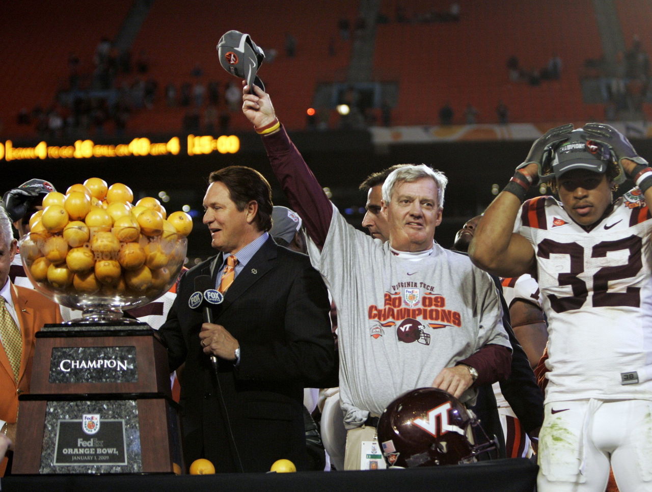 The Hokies played in eight BCS bowl games under Beamer, winning the Sugar Bowl in 1995 and the Orange Bowl in 2009. In 1999, Beamer and star quarterback Michael Vick led Virginia Tech to the National Championship game, where the Hokies took a lead into the fourth quarter before losing 46-29. Beamer won the Walter Camp Coach of the Year award that year.
