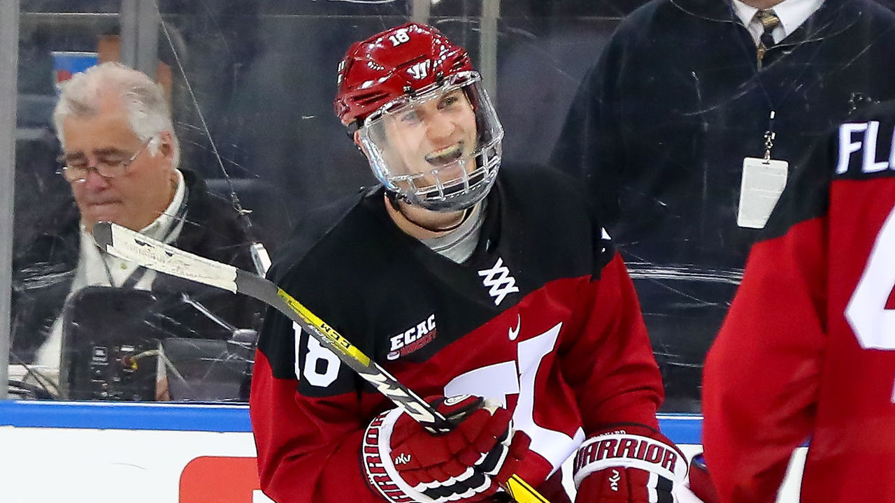 Defenseman Adam Fox's terrific season at Harvard continues. The Carolina Hurricanes prospect has 20 points, including five goals, in 11 games. His numbers aren't necessarily even the most impressive part. Fox demonstrates an ability to read the ice, and to judge the time and space available to him, that some professional players don't even have. That's not even getting into his skating, which is one of the best aspects of his game. If Fox keeps up this level of play and Carolina can sign him this offseason, don't be surprised if he shows up on the Hurricanes' NHL roster next fall.