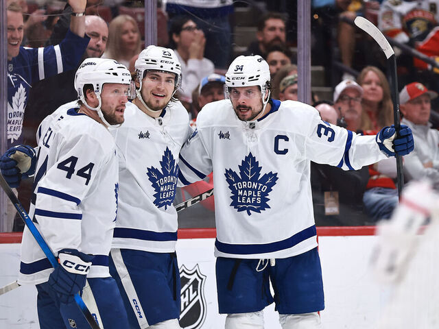 Head coach Craig Berube's controversial decision to keep Matthews and linemate Mitch Marner together proved fruitful. Marner broke up a Panthers breakout, spun, and swung a pass to Matthews, who flew down the left wing before beating Sergei Bobrovsky five-hole with his patented wrister. It was Matthews' first career goal in Round 2 of the playoffs.