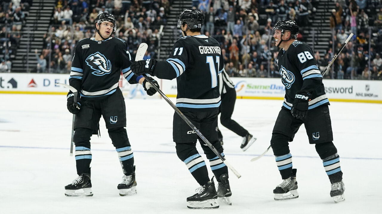 Two: The Mammoth's top offensive line of Logan Cooley between JJ Peterka and Dylan Guenther is cooking early in Peterka's Utah tenure. The trio's outscoring the opposition 7-1 through 77 five-on-five minutes. Pure speed from Peterka. Give-and-go's featuring Cooley. Finishing ability with Guenther.