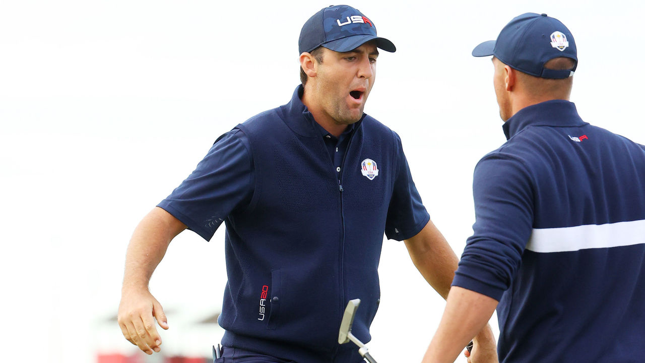 The third match was an incredible back-and-forth that was very tight throughout the afternoon. Fleetwood and Hovland held a 1-up lead heading to No. 14, but DeChambeau and Scheffler went bananas with birdies on four straight holes to win the match 3&1. Scheffler finished his first Ryder Cup team sessions with a 1-0-1 record, while Hovland led in all four of his matches over the first two days but somehow ended up with a 0-3-1 mark.