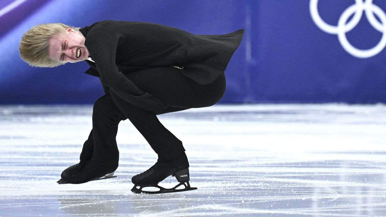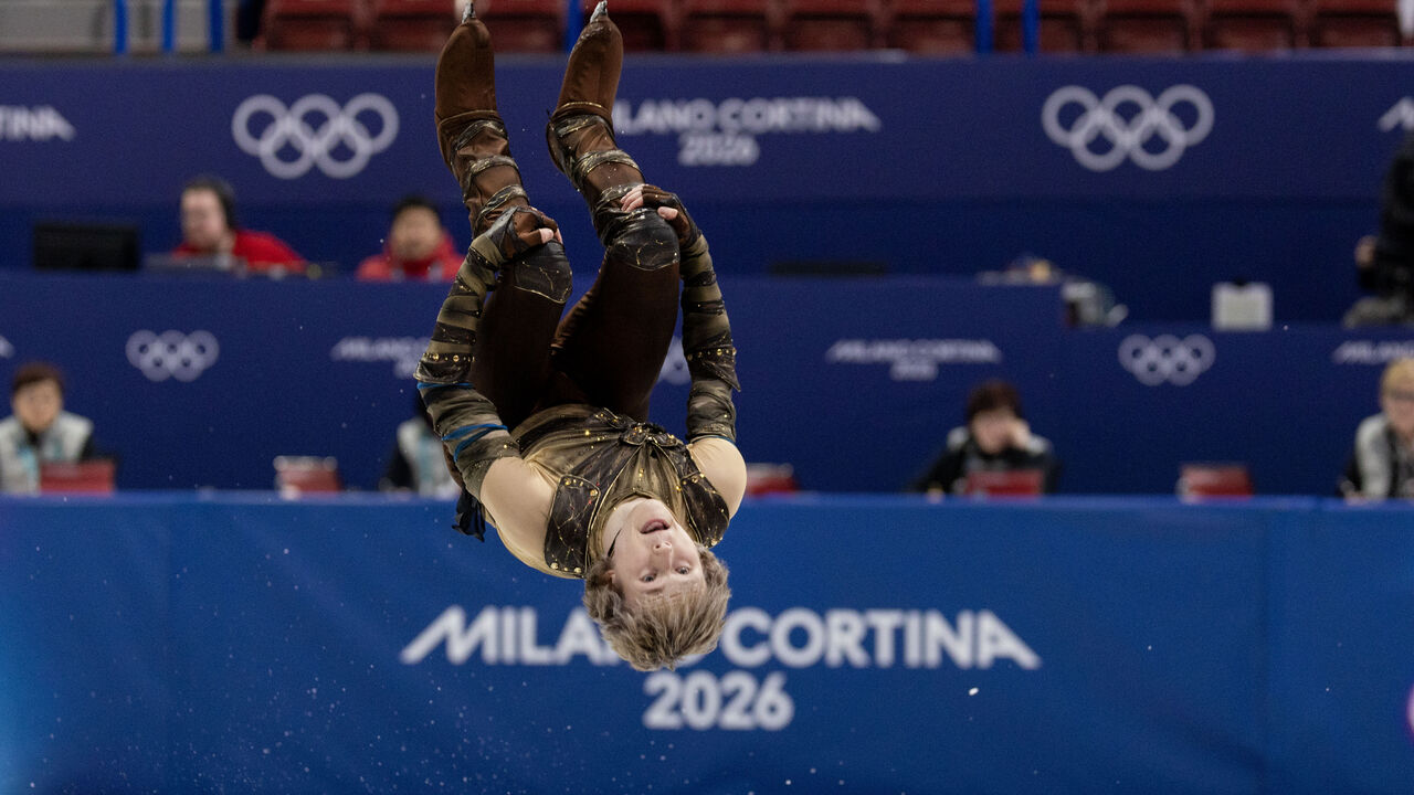 Ilia Malinin pulls off a backflip as part of his short program for the team event in figure skating. His second-place finish added nine points to the Americans' tally, securing a spot in the final round.