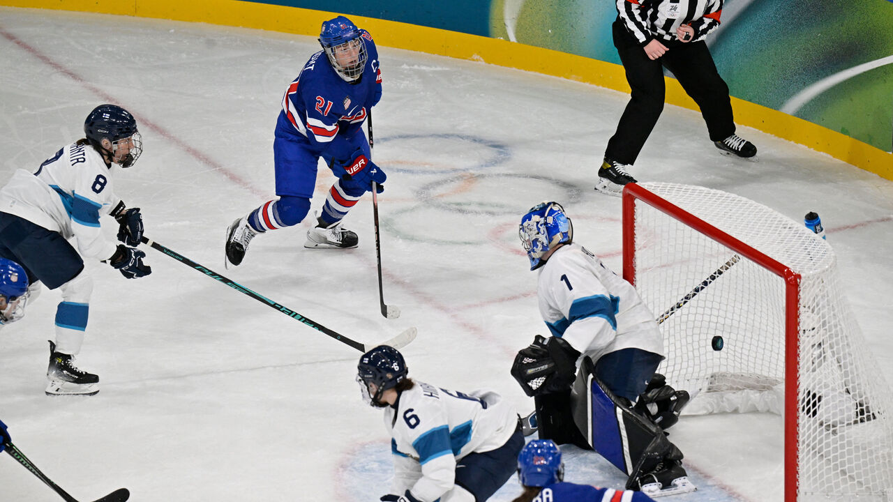 Hilary Knight scores midway through the second period against Finland for her 14th career Olympic goal, tying the all-time Team USA record. With one more, the Seattle Torrent forward will surpass Natalie Darwitz and Katie King-Crowley.