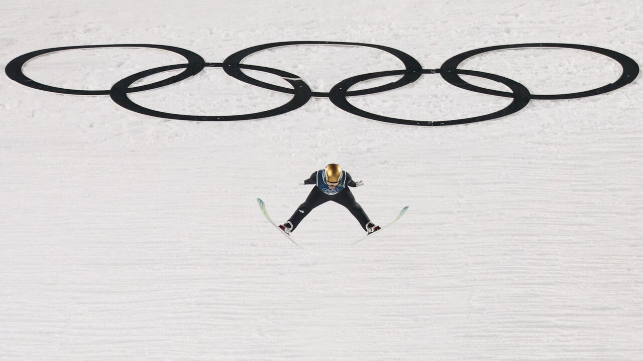 Norway's Anna Odine Stroem sails to victory in women's normal hill ski jumping. The Norwegians finished the first day tied for the medal lead with host Italy and Sweden. The countries each have three medals: a gold, a silver, and a bronze.