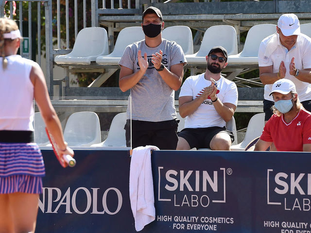 They watched sixth-seeded Donna Vekic of Croatia beat Arantxa Rus of the Netherlands 6-1, 6-2 in windy conditions in the first official event - for men or women - since early March.